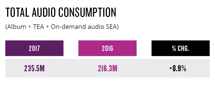One of my hypotheses was to focus on the music industry since a main function of a mobile device is used to listen to music. Based on my research and backed by the Nielsen rating, it was determined that in 2017 music was consumed approximately 8% more than in 2016. This let me know that I was on the right track.